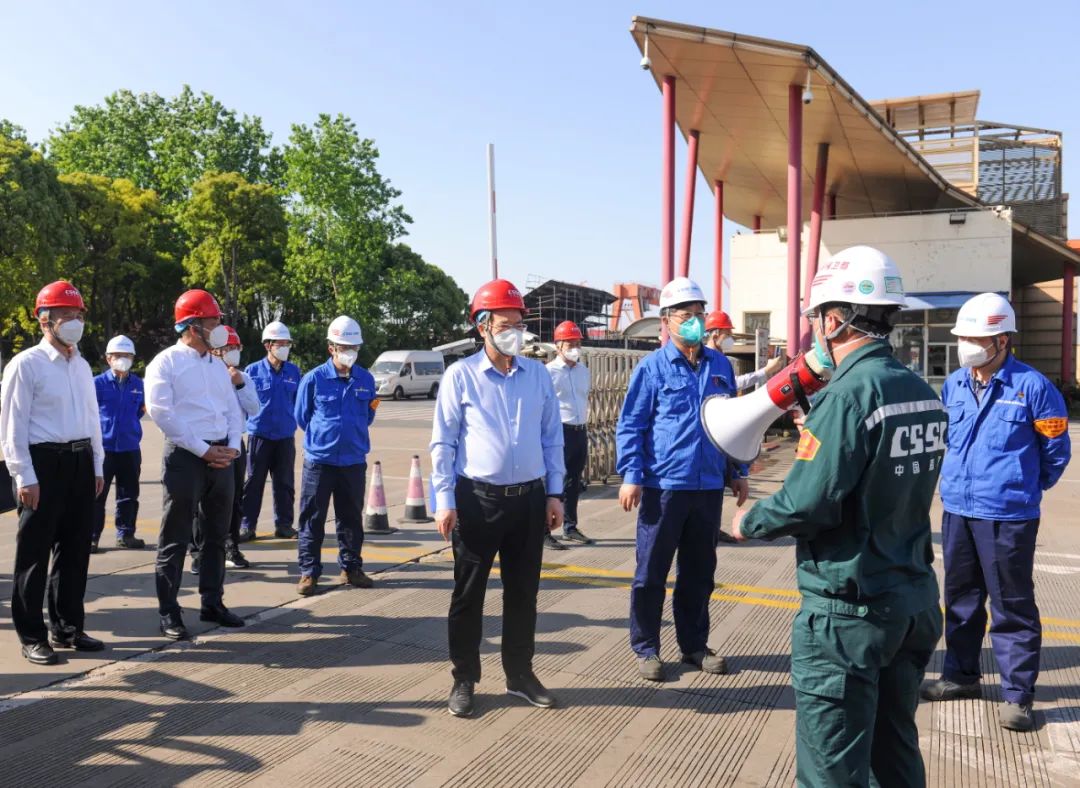 5月5日,中國船舶集團有限公司黨組副書記、總經理楊金成到集團公司旗下上海外高橋造船有限公司調研疫情防控和復工復產工作。中國船舶集團黨組成員、副總經理孫偉參加調研。
