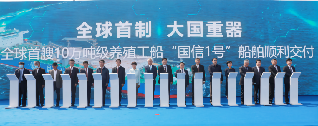 5月20日,中國(guó)船舶集團(tuán)旗下青島北海造船有限公司為青島國(guó)信發(fā)展(集團(tuán))有限責(zé)任公司建造的全球首艘10萬(wàn)噸級(jí)智慧漁業(yè)大型養(yǎng)殖工船“國(guó)信1號(hào)”交船命名儀式在青島舉行。中國(guó)船舶集團(tuán)黨組書記、董事長(zhǎng)雷凡培,黨組成員、副總經(jīng)理孫偉通過(guò)視頻出席儀式,山東省人民政府黨組成員、副省長(zhǎng)凌文,青島市委副書記、市長(zhǎng)趙豪志,中國(guó)海洋大學(xué)黨委副書記、校長(zhǎng)于志剛,中國(guó)工程院院士麥康森等領(lǐng)導(dǎo)和嘉賓出席儀式。青島市副市長(zhǎng)趙燕為新船命名。