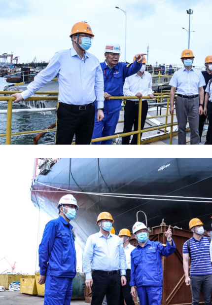9月22日,中國船舶集團有限公司黨組副書記、總經理楊金成到集團公司旗下江南造船、滬東中華調研指導工作。楊金成聽取了江南造船、滬東中華近期安全生產、疫情防控、保密保衛、信訪維穩等工作及生產經營情況的匯報,并登上兩家企業船塢碼頭查看了重點在建船舶進展情況。