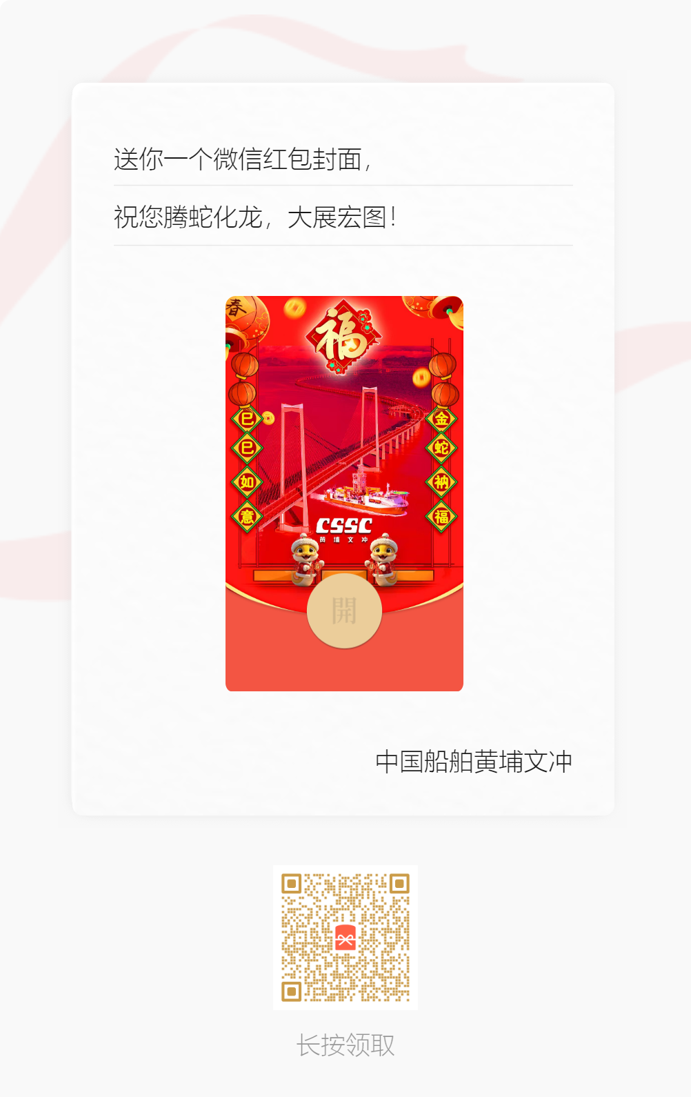 | 紅包封面:武昌造船/黃埔文沖/七〇二所/中船發(fā)動機/中船動力/中船九院/中船郵輪/七二五所