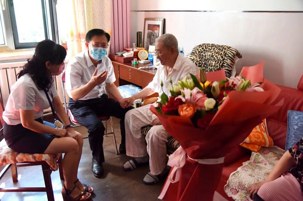 七院黨委書記、黨委副書記帶隊走訪慰問了健在的抗日戰爭時期及以前參加革命工作的李俠、邢家千、于占全、楊海川、肖元壽、宋振英等6位老同志,送去院黨委的祝福和慰問金,向他們表示感謝和崇高敬意。6位老同志年齡都在90歲以上,最年長的李俠老人已101歲。