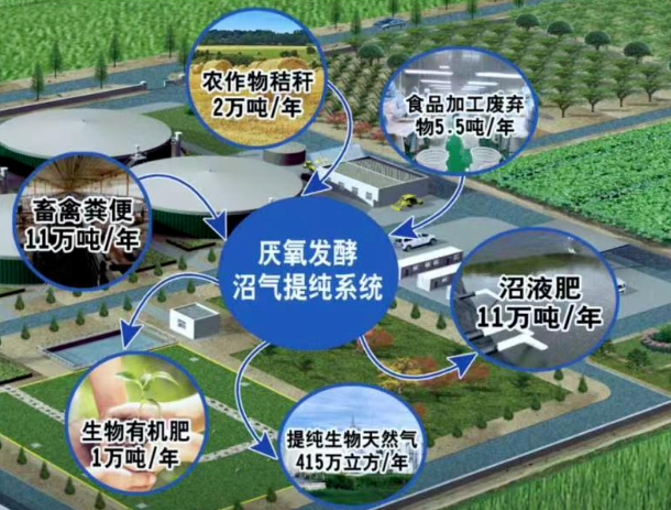 中國船舶七一九所所屬中船重工環(huán)境工程有限公司鷹潭市有機廢棄物處置中心,實現(xiàn)全量收集江西省鷹潭市余江區(qū)生豬養(yǎng)殖糞污,通過密閉運輸車運送到處置中心,在混合池短暫停留、調(diào)制除雜后,泵送至厭氧消化系統(tǒng),進(jìn)行中溫厭氧發(fā)酵生產(chǎn)沼氣。