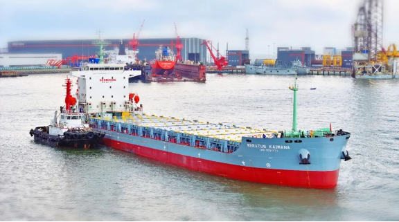 693TEU集裝箱船1號船是中船廣西承接的首艘集裝箱船,也是廣西造船工業史上首艘出口的萬噸級集裝箱海船。該船離港后,將服務印度尼西亞海域以及新加坡、馬來西亞等東南亞國家的支線航線的貨物運輸。