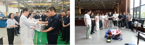 中船發動機開展“夏送清涼”系列活動,為堅守在一線的職工送去防暑降溫用品。此外,該公司還采取科學調整一線作息時間、避免高溫時段長時間作業、加強生產場所通風降溫、配備充足防暑藥品和自動體外除顫器(AED)等多項措施保障夏季安全生產,為職工的生命健康提供堅實保障。