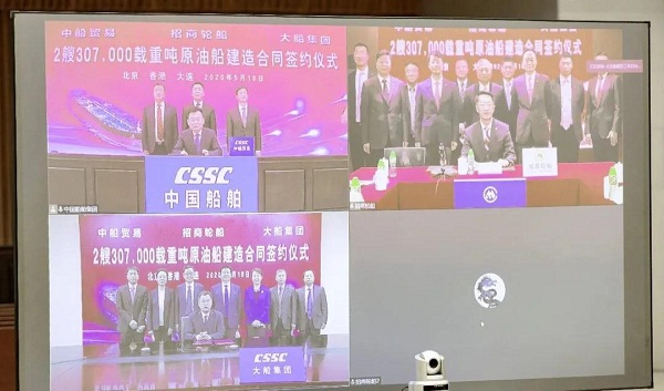 “云簽約”不停歇!中國船舶集團旗下大船集團聯合中船貿易與招商輪船簽署2艘30.7萬載重噸原油船建造合同