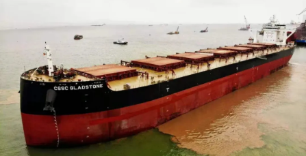 3月29日,中國船舶集團旗下上海船院負責詳細設計、黃埔文沖建造的第4艘12萬噸散貨船“CSSC GLADSTONE”號交付。