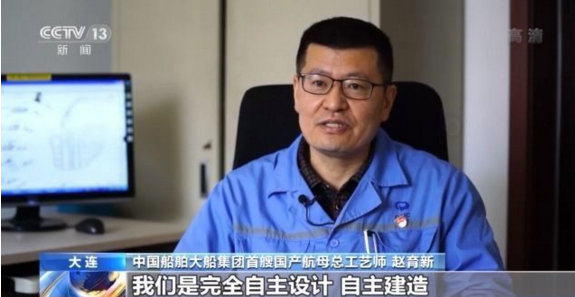 中國船舶大船集團(tuán)首艘國產(chǎn)航母總工藝師 趙育新:從第一次海試到最后交付,在這一年半的時(shí)間里沒有休息的,連軸(日以繼夜)地在這個(gè)工程上,一起拼搏。